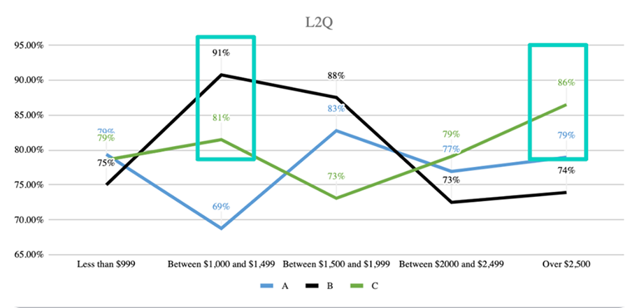 Used underwriting personas mapped to various credit tiers to show dynamic pricing